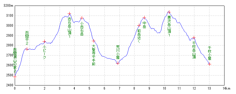 | 千枚小屋 | 14:26:55 | 13.54km | 2612m |