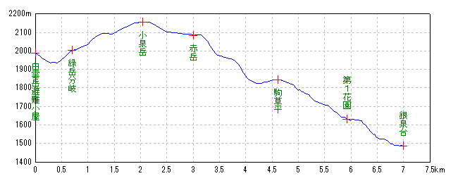| 緑岳分岐 | 06:22:31 | 0.71km | 2002m |